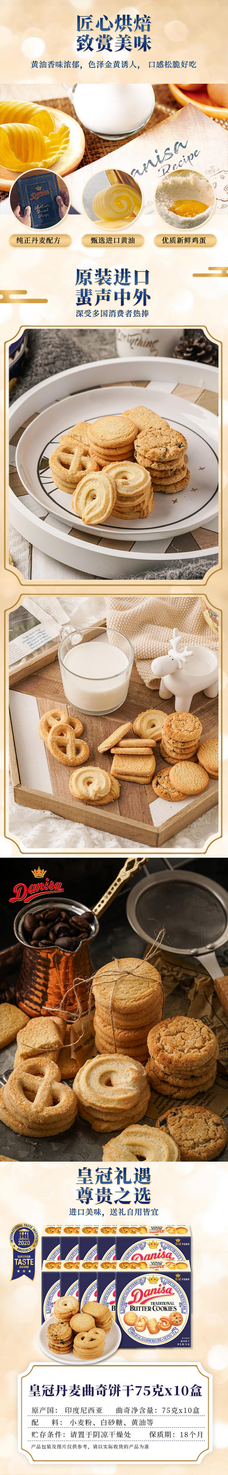 Danisa皇冠丹麦曲奇饼干75g*10囤货小包装婚庆伴手礼节日零食送礼